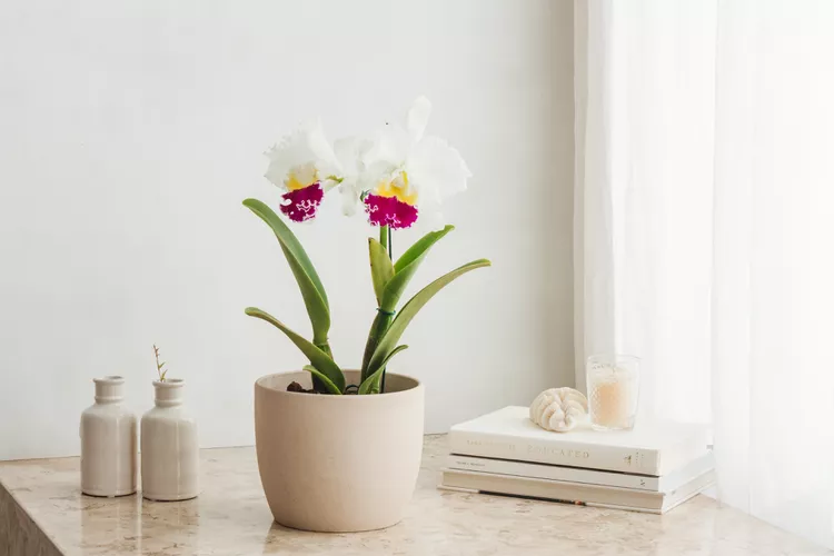 Cattleya orchids, also sometimes called corsage orchids or queen of orchids, typically feature showy, fragrant flowers that come in a wide variety of shapes, colors, and color combinations. These orchids are epiphytic, meaning they naturally grow attached to other plants, such as tree branches. When grown as houseplants, cattleya orchids prefer bright, indirect light, an orchid-specific potting mix, and somewhat high humidity.